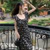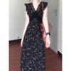 2025 Summer French Black Floral Waist-Slimming Long Dress for Women