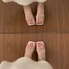 Sheepskin~ 6CM square head is not tired, high-heeled slippers women's cross-strap open-toed cool slippers outer wear summer