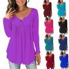 Women's Casual Fashion V-Neck Button Solid Color Long Sleeve Top