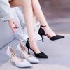 Versatile rhinestone mid-heel one-word buckle sandals high heels Korean version sexy pointed thin heel single shoes women's 2025 summer new models