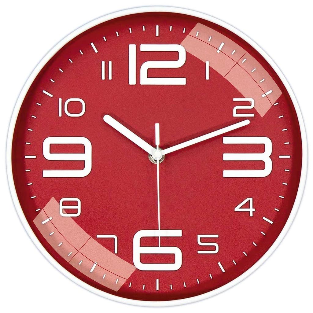 Nástěnné hodiny 12" Tiché Quartzové Dekorativní Nejnovější Nástěnné hodiny Netikající Klasické hodiny Na baterie Kulaté Snadno čitelné do pokoje/domova/kuchyně/ložnice/kanceláře/školy - Analogové, Plastové Červené
