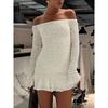 Elsa Fashion Style Spring and Summer Ins New Arrival Knitting off-Neck Sexy Sweet Pettiskirt Short Sexy Dress