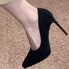 Bow black suede waterproof table high heels thin heel pointed thick sole niche with skirt single shoes banquet shoes women
