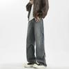 New Autumn Mid-waist Straight Version Jeans Men's Casual Trendy Design Wide-leg Long Pants