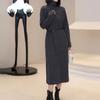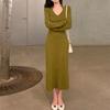 Temperament gentle wind with scarf long knitted dress women's autumn and winter waist thin sweater skirt with coat inside