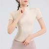 Foreign Trade Belt Chest Pad Yoga Clothes Short sleeve Front Zipper Tight Fitness Top Nude Feel High Elastic Sports Running T-shirt Women