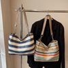 Striped commuter tote bag women's new fashionable large-capacity work shoulder bag
