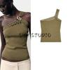 Spring New Women's Clothing French Style All-Matching Gold Inlaid Wide Shoulder Strap Hanging Collar Knitting Tops 4938116