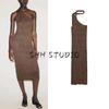 Spring New Women's Clothing Fashion Style Golden Inlaid Knitting Elegant Hanging Collar Dress 4938118