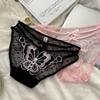 Low-Waist Butterfly Embroidery Bow Underpants Transparent Flower Mesh Slim Panties Women