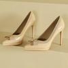 Fashion Spring Thin Heels Pumps Patent Leather Shoes Women Elegant Bow High Heel Ladies Sexy Footwear 2025 Autumn Red Black