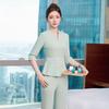This uniform is designed specifically for women working in health clubs and spas, providing a professional and stylish appearance. Made from a cotton blend material, it offers comfort and durability, ensuring ease of movement throughout long shifts. The long sleeves provide extra coverage, making it suitable for a range of tasks within the beauty and wellness industry. The uniform's design combines functionality with a modern aesthetic, making it an ideal choice for professionals who prioritize both style and practicality.