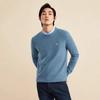 This stylish men's sweater features a unique double collar design and a faux two-piece look, combining fashion with comfort. Crafted from warm, water-soft fabric, the sweater provides a cozy feel for cooler days. It is made from a polyester material with a slim fit that contours the body for a modern silhouette. The round neckline and long sleeves offer a classic appeal, while the blend of chemical fibers ensures a durable and soft texture, mimicking the feel of suede.