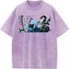 Tomioka Giyuu Akaza Anime Clothing Demon Slayer Cotton Tee Men Women Retro Washed T-shirts Casual T Shirt Harajuku Male Tshirt