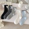 Female Spring and Autumn Sweet Solid Color Variety Pull A Heel Hot Diamond Ribbon Bow In The Tube Pile Socks