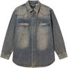 Levis Loose Comfortable Distressed Flannel Long Sleeve Denim Jacket Men jackets Medium-Blue 0017E-0002