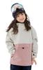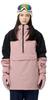 The BOARDEE Women's Snowboard Jacket BD24IFOT41W is made from polyester with a water resistance of 20,000mm and a breathability of 1,500g. It features an adjustable hood, cuffs, and hem, two side pockets, a zippered chest pocket, a goggle pocket, and an internal card slot for ample storage. Powder guards on the cuffs keep snow out for added comfort.