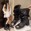 2025 bow straps woven western boots foreign style great good-looking punk wasteland wind wide tube pile small short boots women