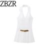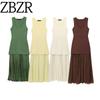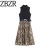 Zbzr Spring New Women clothes Western Style Fashion Small Pleated Patchwork Midi Dress 8462335 700