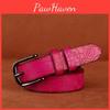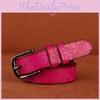 This women's casual leather belt features genuine two-layer cowhide material with a sleek, polished finish, providing durability and a refined look. The alloy pin buckle, measuring approximately wide, secures with a traditional prong design, ensuring a comfortable fit. Available in multiple colors including black, white, and red, it measures 105 to 120 centimeters in length with a slim profile under wide. Ideal for daily fashion and versatile styling, it enhances casual or office outfits with its simple pattern and trendy alloy closure. Easy to maintain by wiping with a soft cloth, this belt offers reliable performance for everyday wear.