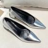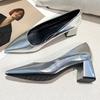 Fashion Silver Pointed Toe Thick Heel Women's Pumps Spring Autumn New Shallow Mouth Temperament Retro Commuter Low Heel Single Shoes