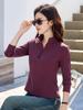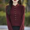 Red button waist top, new autumn and winter inner stand-up collar age-reducing long-sleeved t-shirt for women