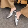 Temperament Baotou half slippers women's spring and summer outer wear square head special-shaped heel empty sandals silver cool slippers