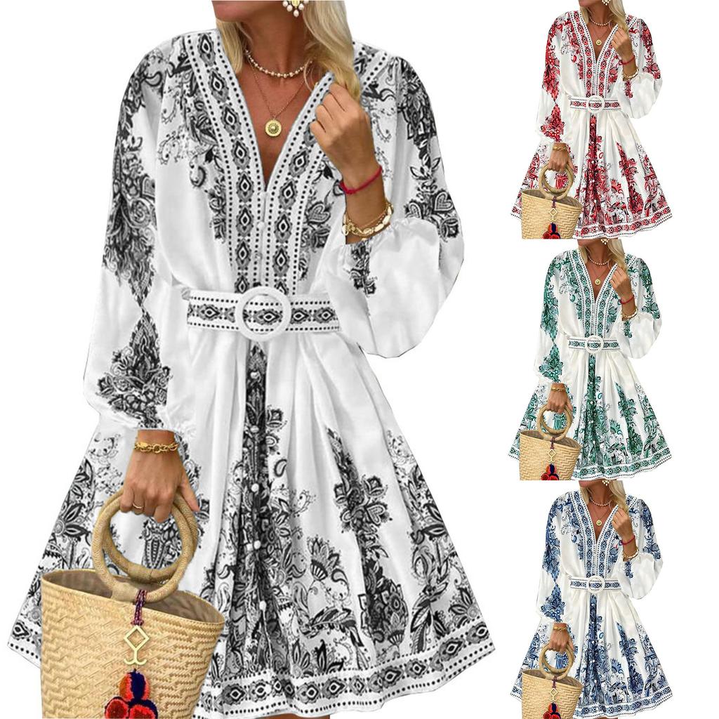 Features:The long flared sleeves with elastic cuffs provide a balanced look that is both modern . The waist is elegantly cinched with a self-tie belt, enhancing your natural curves and creating a flattering silhouette.      Match:Perfectly paired with sandals, heels, or flats, and can be styled with a handbag or accessories for casual or formal look.      Occasions:This dress is ideal for a variety of settings, from casual outings to semi-formal events. It is perfect for a day at the beach, a brunch with friends, or even a casual  environment. Its versatile design makes it suitable for both daytime and evening activities.Suitable for beach, vacation, dating, wedding, brithday, anniversary, homecoming, cocktail, party, club, dinner, holiday and casual daily wear.         ing instructions:To maintain the dresses, we recommend hand    ing in cold water with mild detergent. Avoid bleach and wring gently. Lay flat to dry, and iron on low heat if necessary. Proper care will ensure your dress remains a staple in your wardrobe.