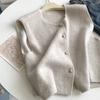 Korean-Style Slimming Knitted Vest with Gold Buttons - Women's Round Neck, Loose Sleeveless Top