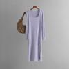 Fall Winter Lazy Wind Loose Square Collar Sweater Dress Women's Long Sleeve Solid Color Knit Wide Split Dresses