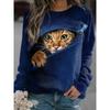 Spring and Autumn Round Neck Casual 3D Cat Print Cute Little Fresh Sweatshirt Women's Casual Home Wear Versatile Women's Hoodie