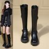 Women Knee High Boots Fashion Knight Long Booties Square High Heels Autumn Winter Warm Short Plush Shoes