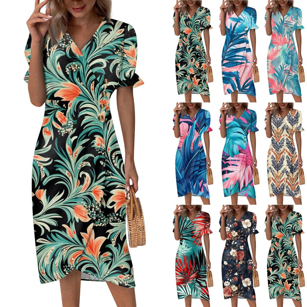Feature: Summer Dresses for women comes with colourful floral print,v neck casual dress,short sleeve dress,summer loose dresses with pockets for women,tshirt dresses ,casual womens beach dress.