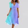 Women's Summer Texture Printed Casual Wrap V Neck Ruffled Hood Short Sleeves Belt A-Line Ruffle Hem Midi Sundress