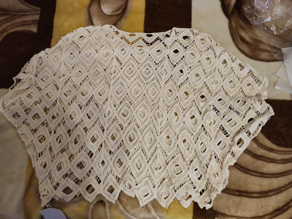 Pretty cape blouse. Looks very good as a second layer over a dress, over a top.