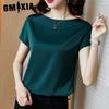 GMXIA Women's Fashion Casual Solid Color Print Short Sleeve O Neck Blouses & Shirts