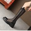 Thin Thick-soled Boots Women's Leather Mesh Muffin and Knee Cool Boots 2025 New Summer Hollow High-heeled High Boots
