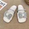 2025 New European Flat-bottomed Bow Rhinestone Slippers Women's Cross with Satin Open-toed Fashion Outer Slippers