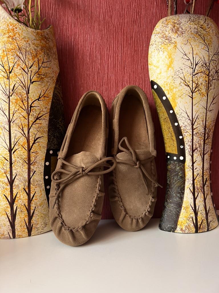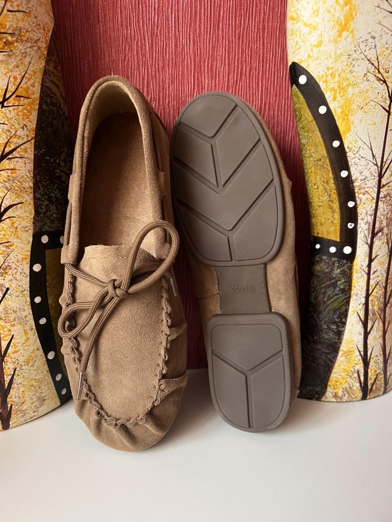 Women Loafers British Style Genuine Leather Beanie Shoes Women Flat Non-slip Vintage Slip-on Moccasins for Women