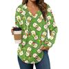 Women's Fashion Hoodies V Neck Long Sleeve Christmas Printed Drawstring Casual Loose Pullover Tops