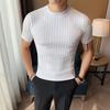 חולצת טי קיצית סרוגה צמודה בגזרה קז'ואלית סטריטוויר צווארון גבוה צבע אחיד שרוולים קצרים טיז תחתון ביגוד יוקרתי