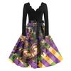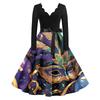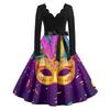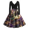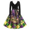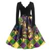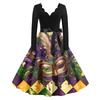 Women's Fashion V-Neck Casual Slim Mardi Gras Printed Long Sleeve Dresses