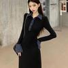 Korean Contrasting Color Lapel Long-sleeved Knitted Dress New Style High-end Waist Slimming Inner A-line Long Skirt for Women