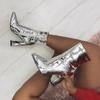 2019 New Sliver Gold Women Ankle Boots Pointed Toe Chunky High Heel Boots Mirror Metallic Women Pumps Female Sexy Stiletto Boots