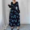 Women's Round Neck Elegant Butterfly Letter Print Long Sleeved Slim Fit Waist Dress