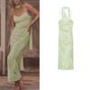 French Elegant Color Block Pleated Off-Shoulder Slip Dress for Women - 2025 Vacation Style