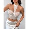 Lace up Hanging Neck Flower Hollow out Beauty Back Square Scarf Bib Type Lace Vest French style Gyaru Sexy Corset Backless Women