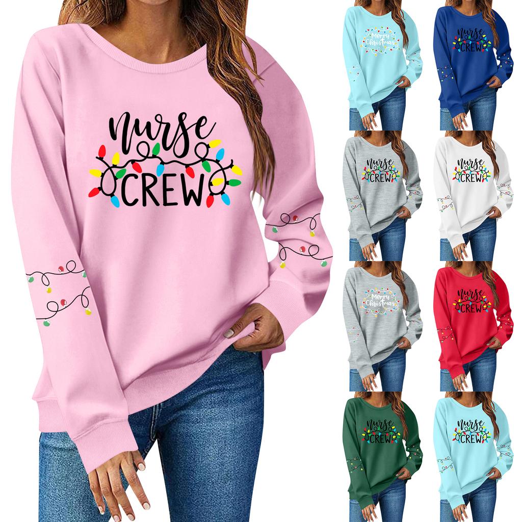 Women Tops Women's Long Sleeve Sweatshirt Casual Crewneck Loose Fit Pollover Fleece Tops