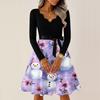 Női Alkalmi Divat V-nyakú Hosszú Ujjú Retro Karácsonyi Mintás Retro Ruha