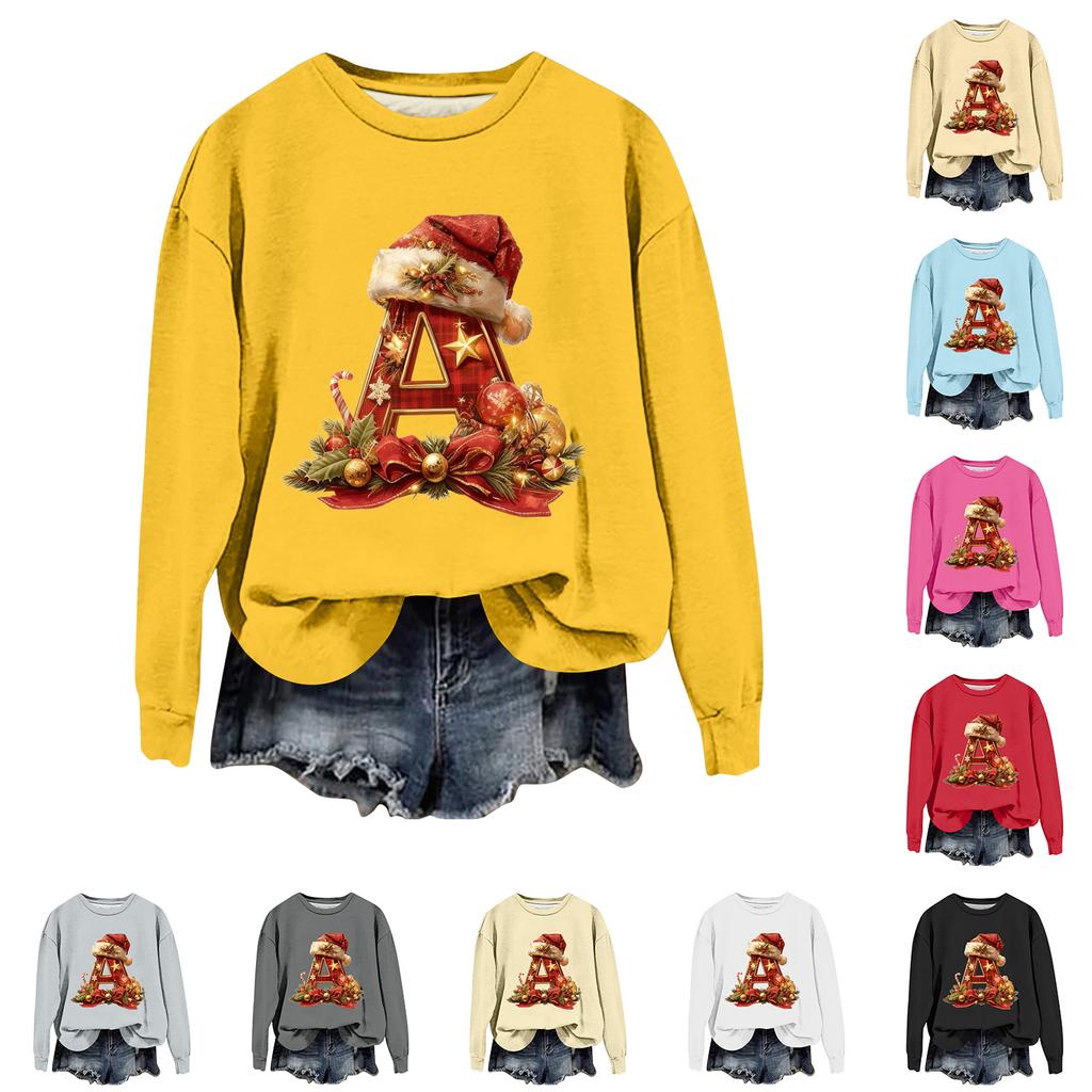 Women's Fashionable Casual Long-Sleeved Christmas Letter Print Crew-Neck Sweatshirt